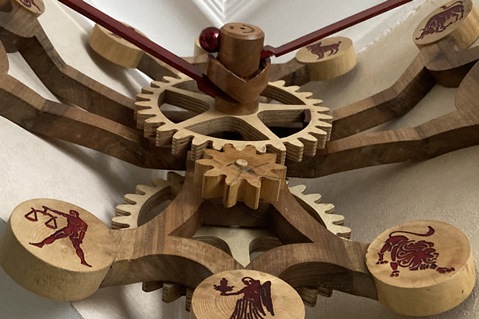 horloge artisanale en bois Esperluette par Roland Dutoya
